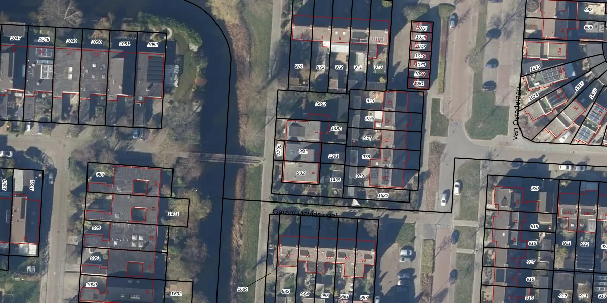 Gebruik de zoekbalk of klik op een perceel om informatie over het perceel te bekijken.