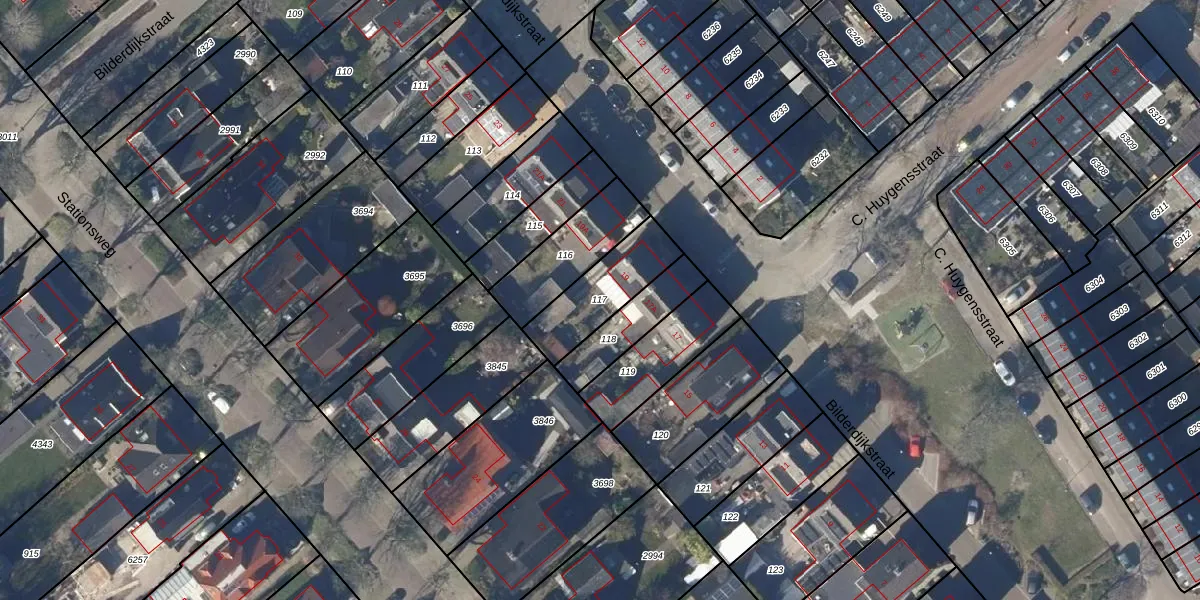 Gebruik de zoekbalk of klik op een perceel om informatie over het perceel te bekijken.