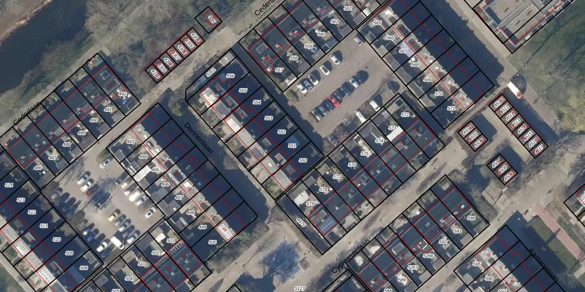 Gebruik de zoekbalk of klik op een perceel om informatie over het perceel te bekijken.