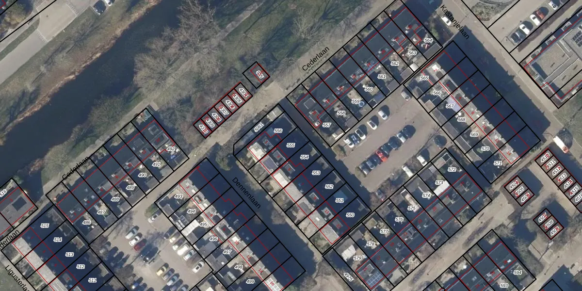 Gebruik de zoekbalk of klik op een perceel om informatie over het perceel te bekijken.