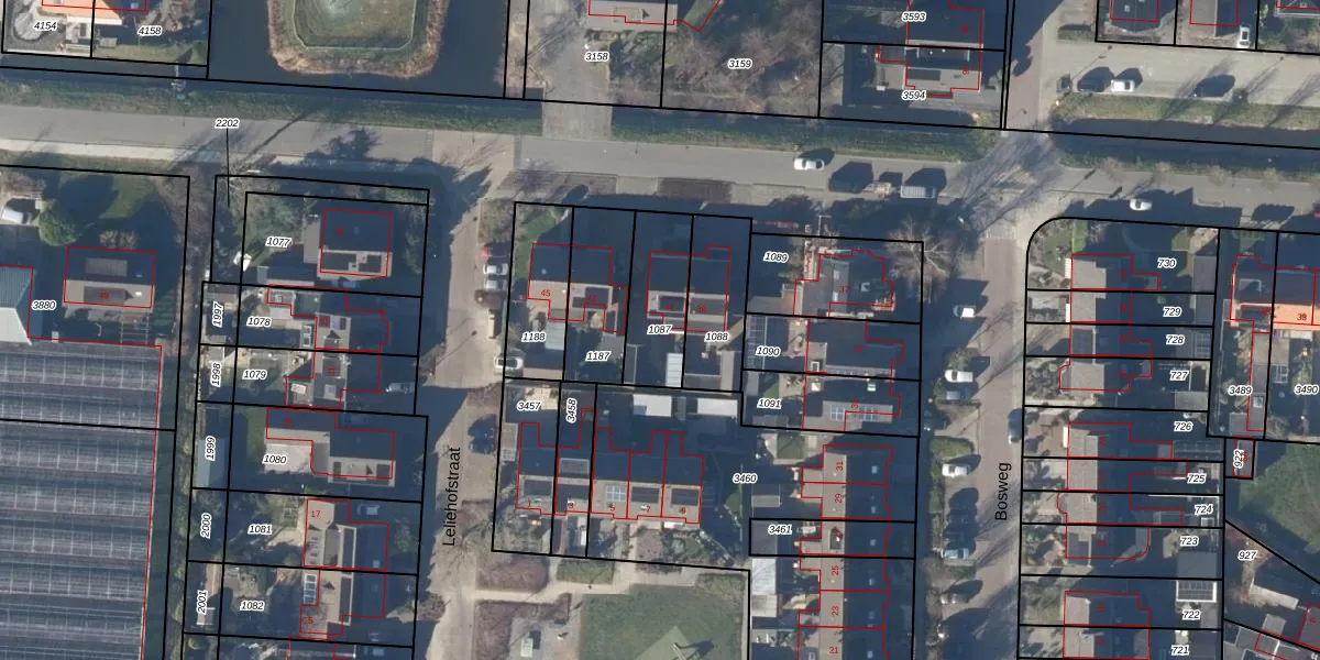 Gebruik de zoekbalk of klik op een perceel om informatie over het perceel te bekijken.