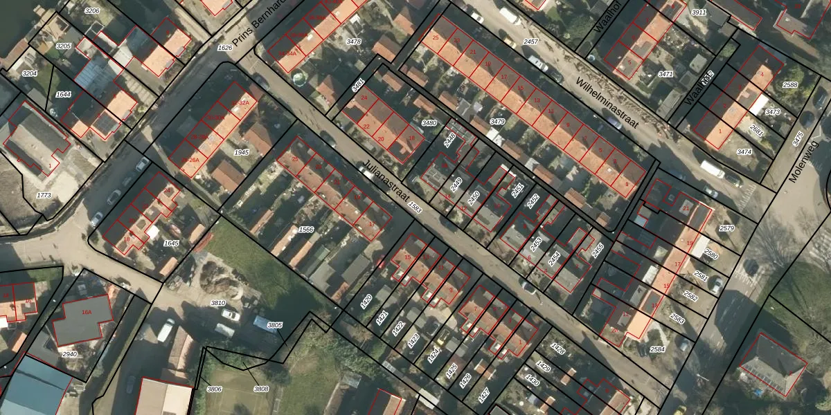 Gebruik de zoekbalk of klik op een perceel om informatie over het perceel te bekijken.