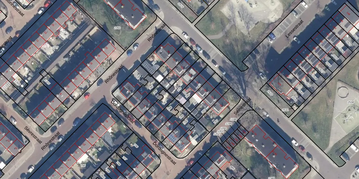 Gebruik de zoekbalk of klik op een perceel om informatie over het perceel te bekijken.