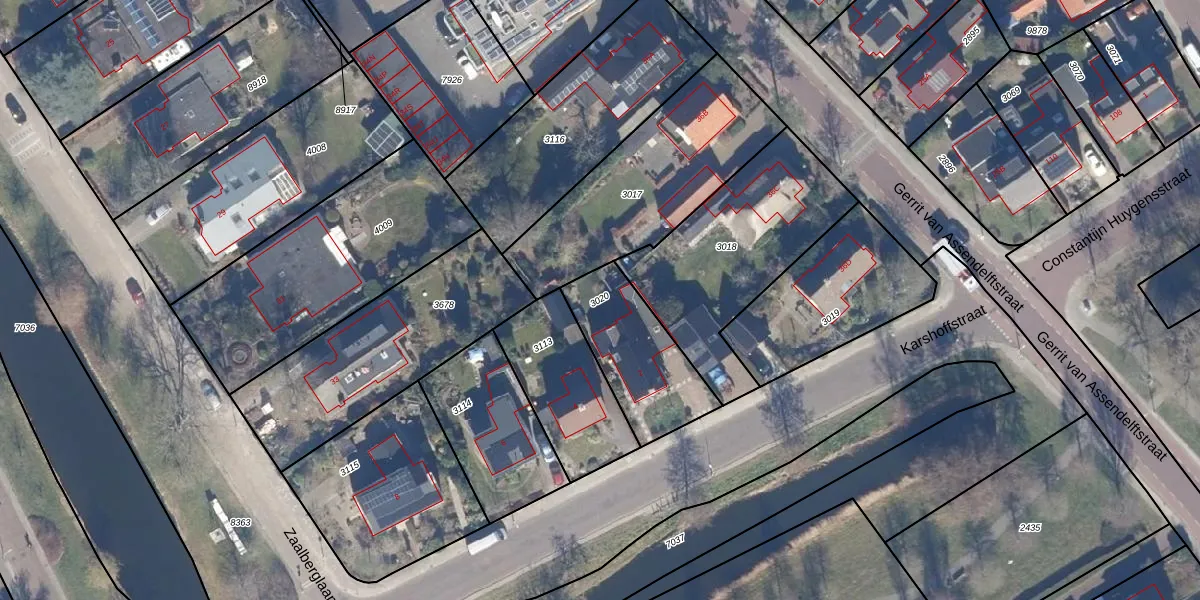 Gebruik de zoekbalk of klik op een perceel om informatie over het perceel te bekijken.