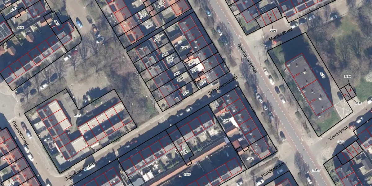 Gebruik de zoekbalk of klik op een perceel om informatie over het perceel te bekijken.
