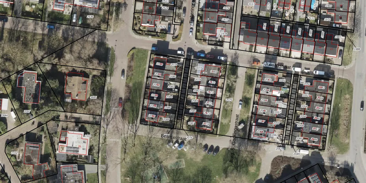 Gebruik de zoekbalk of klik op een perceel om informatie over het perceel te bekijken.