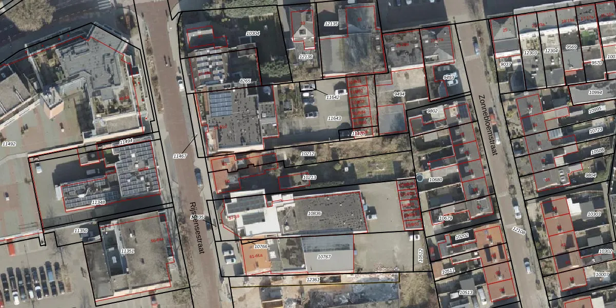 Gebruik de zoekbalk of klik op een perceel om informatie over het perceel te bekijken.