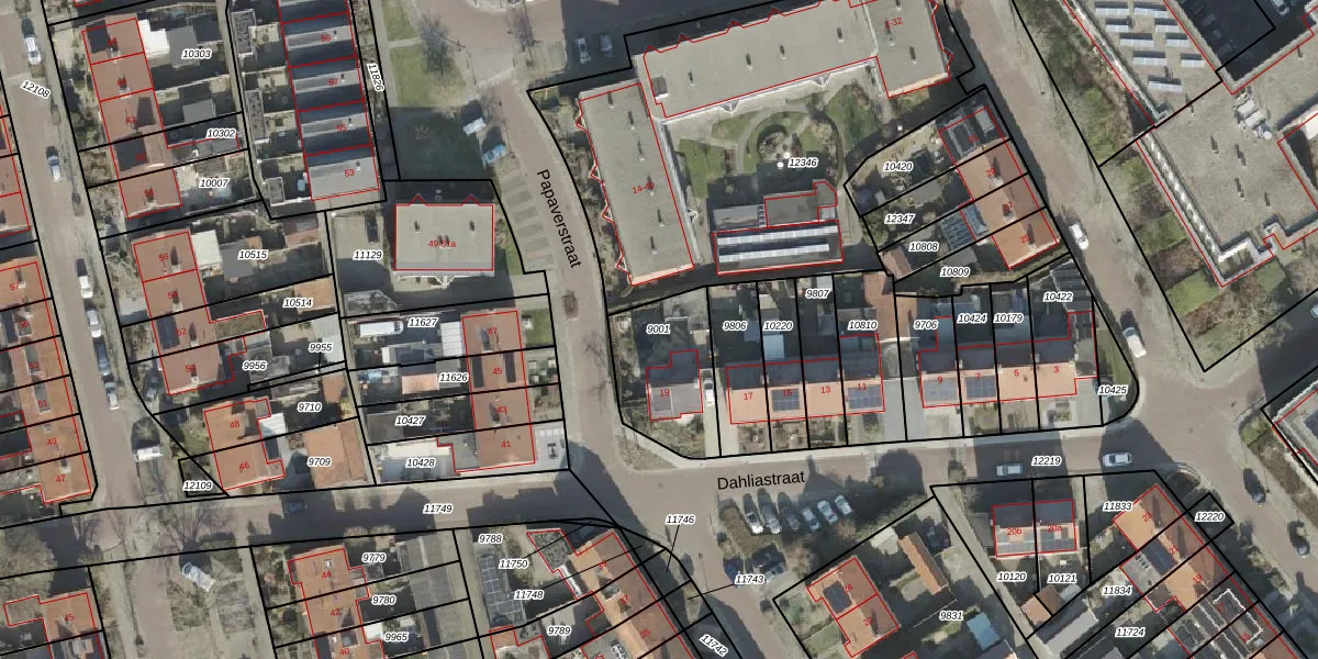 Gebruik de zoekbalk of klik op een perceel om informatie over het perceel te bekijken.
