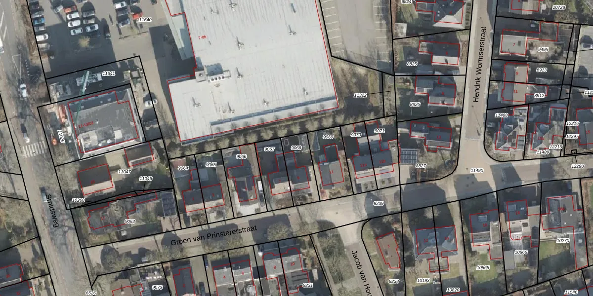 Gebruik de zoekbalk of klik op een perceel om informatie over het perceel te bekijken.