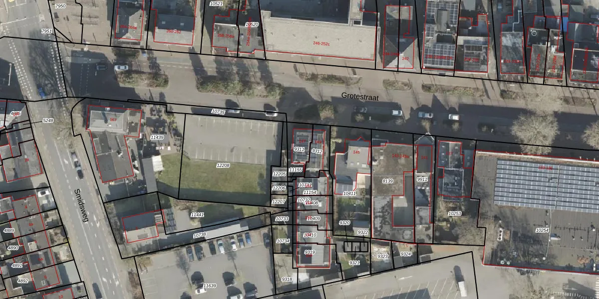 Gebruik de zoekbalk of klik op een perceel om informatie over het perceel te bekijken.