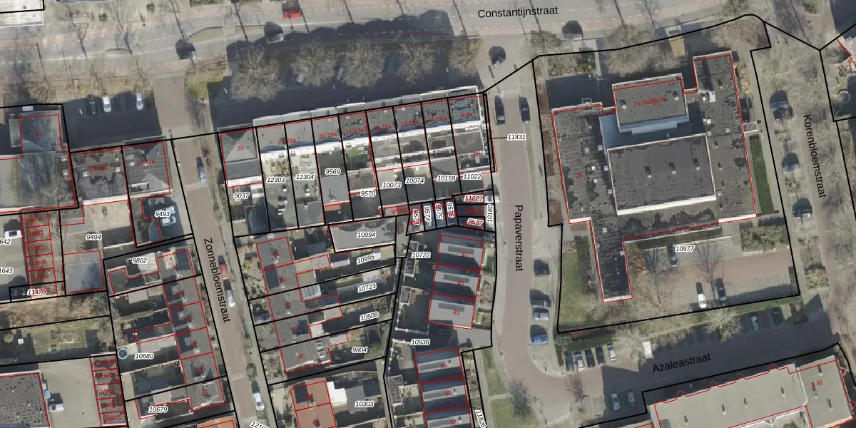 Gebruik de zoekbalk of klik op een perceel om informatie over het perceel te bekijken.