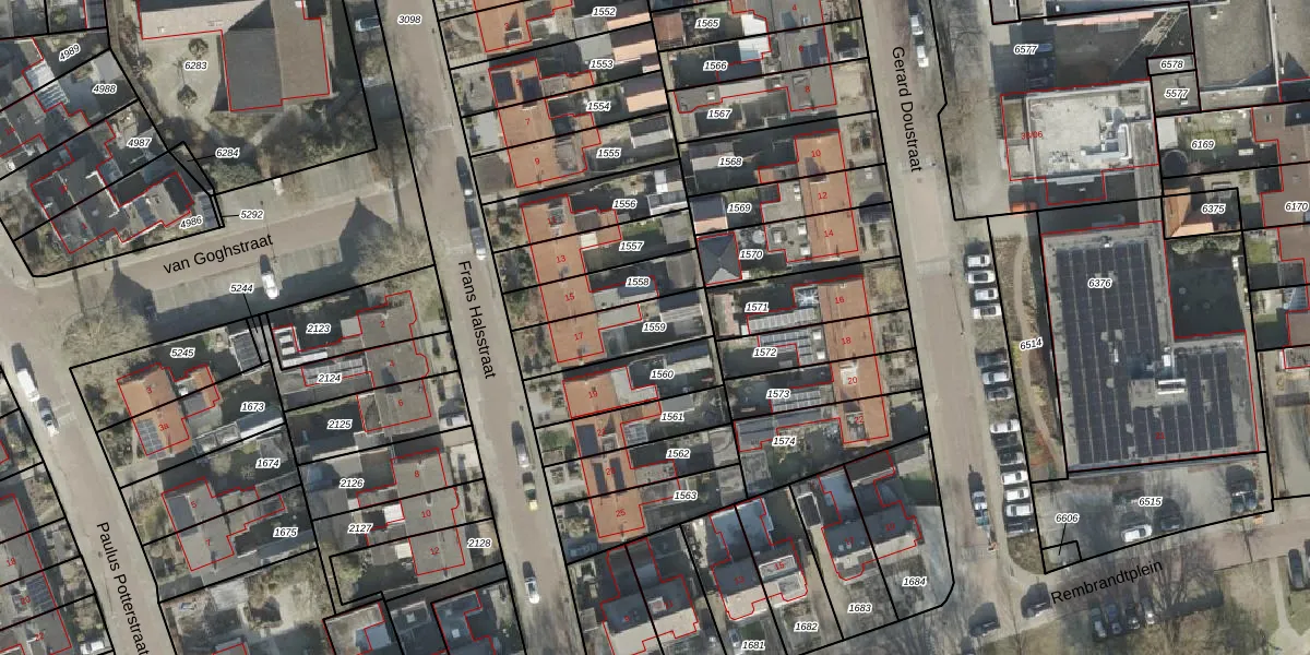 Gebruik de zoekbalk of klik op een perceel om informatie over het perceel te bekijken.