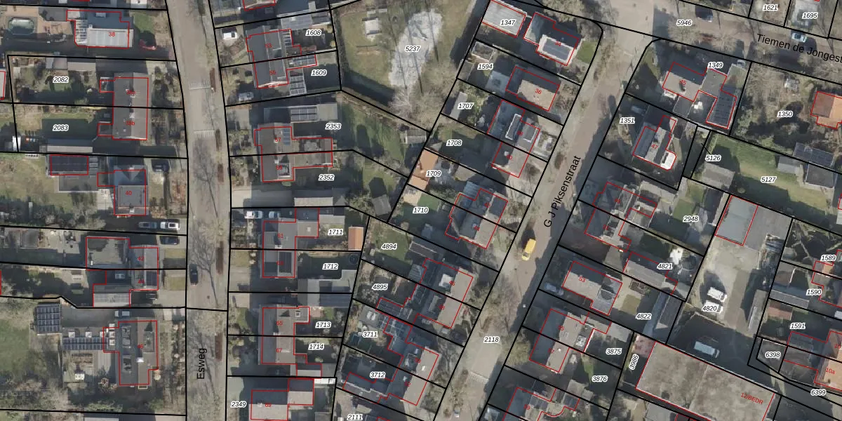 Gebruik de zoekbalk of klik op een perceel om informatie over het perceel te bekijken.