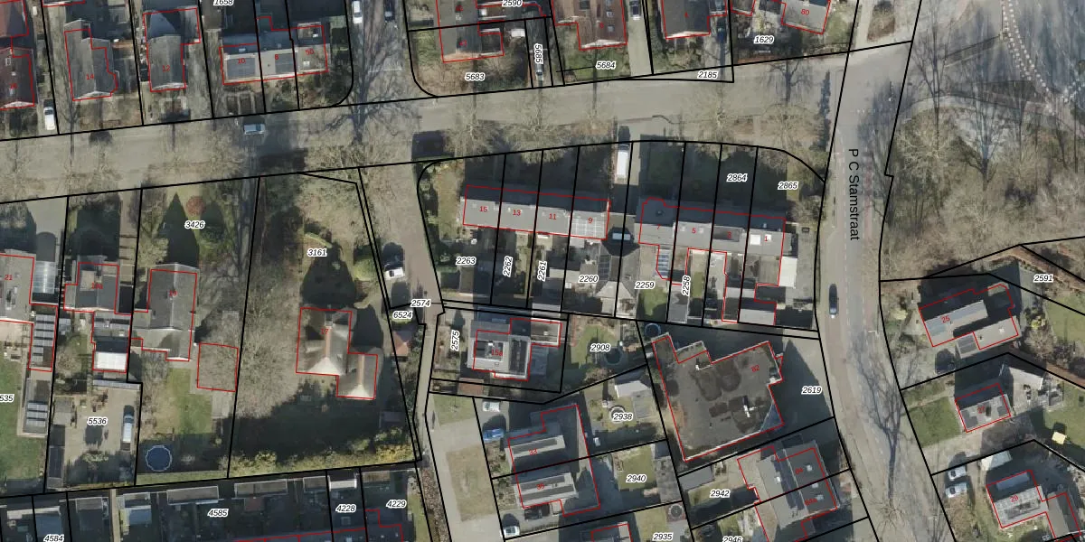 Gebruik de zoekbalk of klik op een perceel om informatie over het perceel te bekijken.