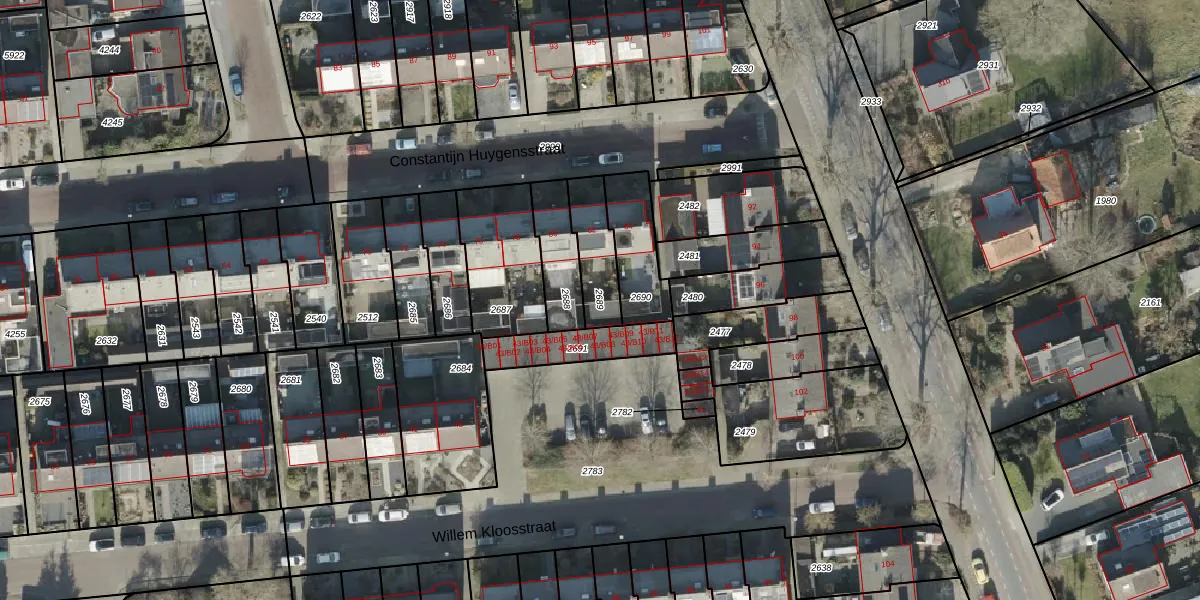 Gebruik de zoekbalk of klik op een perceel om informatie over het perceel te bekijken.