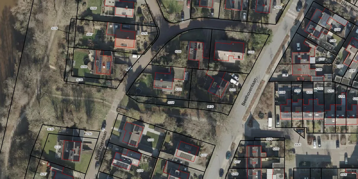 Gebruik de zoekbalk of klik op een perceel om informatie over het perceel te bekijken.