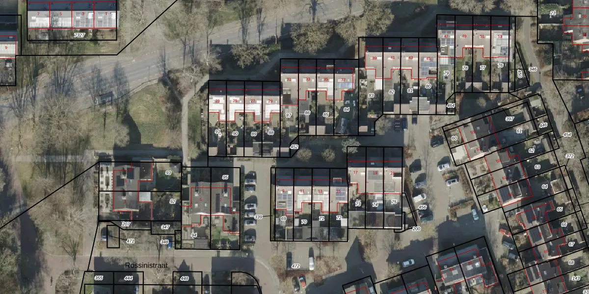 Gebruik de zoekbalk of klik op een perceel om informatie over het perceel te bekijken.