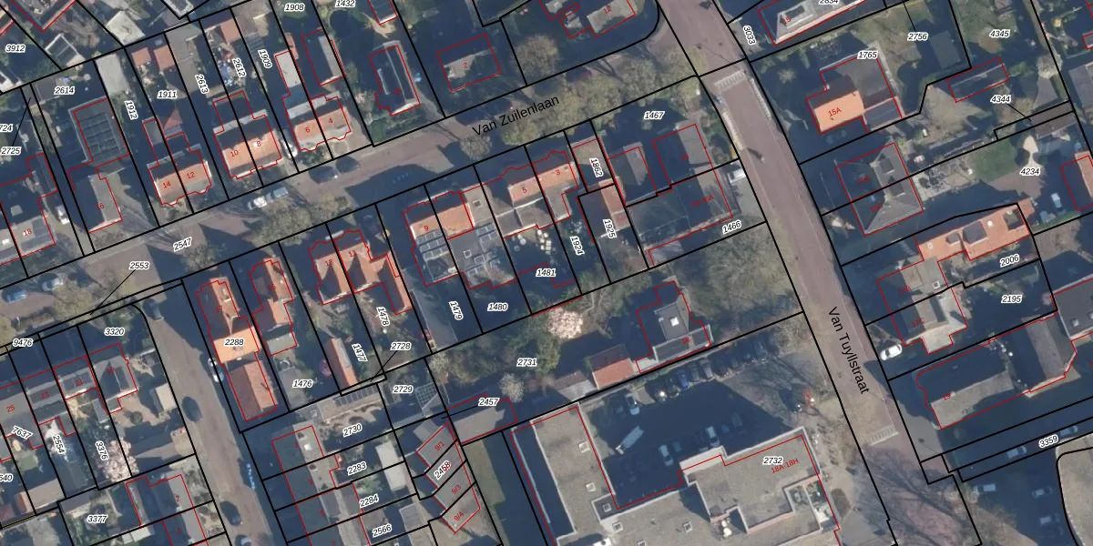 Gebruik de zoekbalk of klik op een perceel om informatie over het perceel te bekijken.
