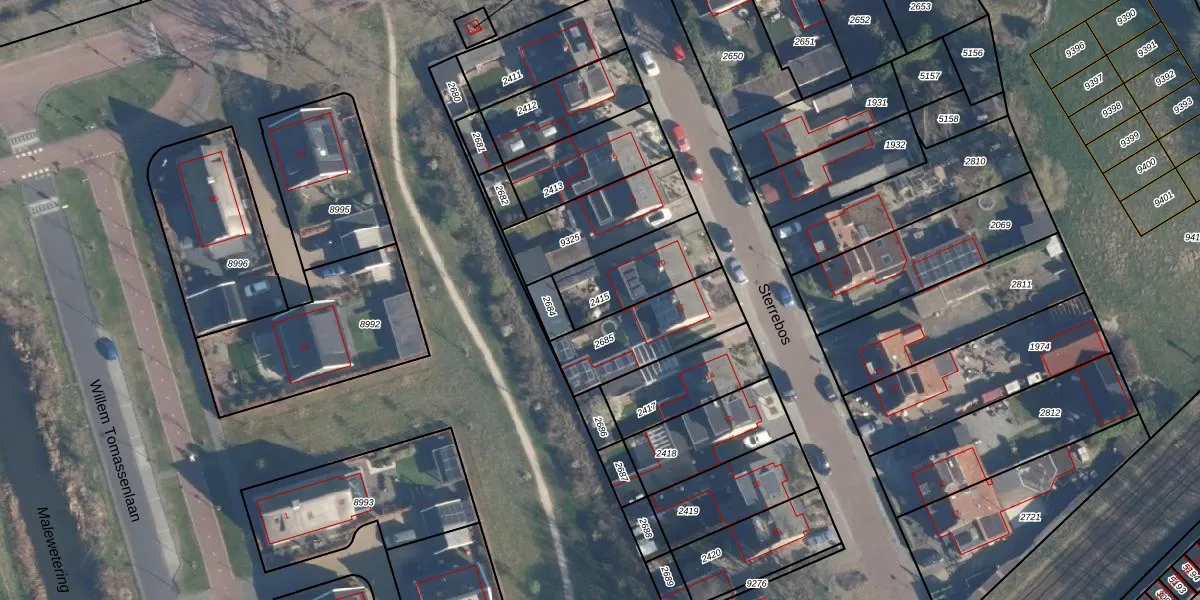 Gebruik de zoekbalk of klik op een perceel om informatie over het perceel te bekijken.
