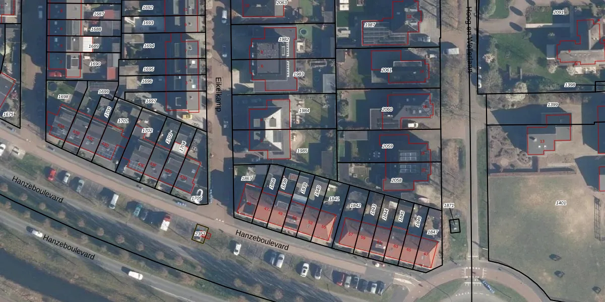 Gebruik de zoekbalk of klik op een perceel om informatie over het perceel te bekijken.