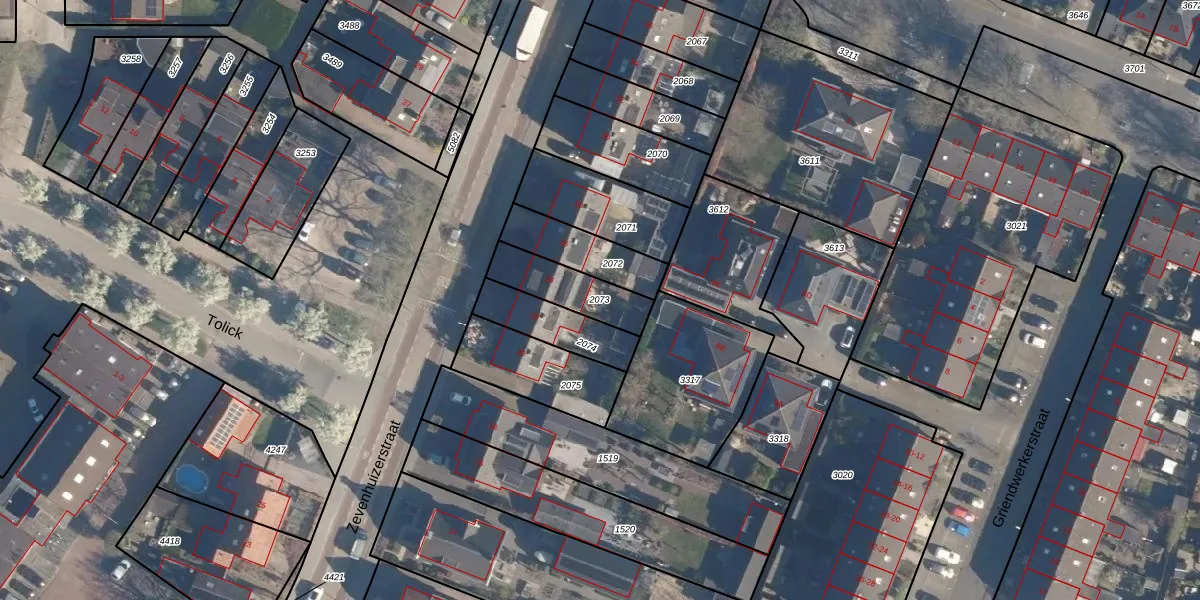 Gebruik de zoekbalk of klik op een perceel om informatie over het perceel te bekijken.