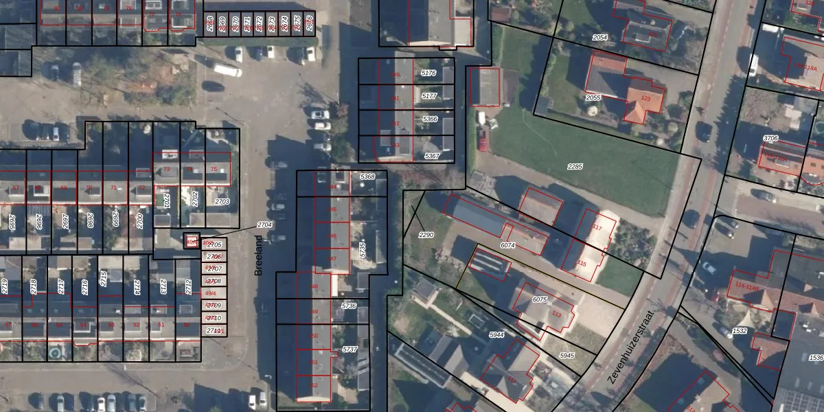 Gebruik de zoekbalk of klik op een perceel om informatie over het perceel te bekijken.