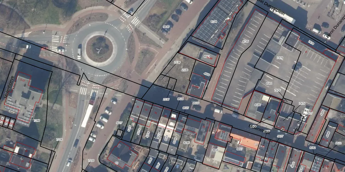 Gebruik de zoekbalk of klik op een perceel om informatie over het perceel te bekijken.