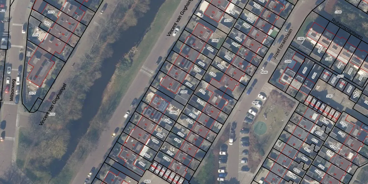 Gebruik de zoekbalk of klik op een perceel om informatie over het perceel te bekijken.