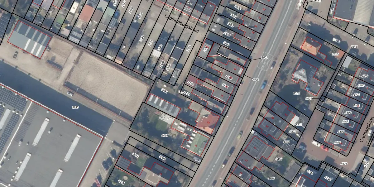 Gebruik de zoekbalk of klik op een perceel om informatie over het perceel te bekijken.