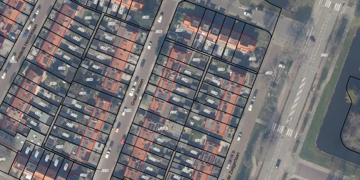 Gebruik de zoekbalk of klik op een perceel om informatie over het perceel te bekijken.