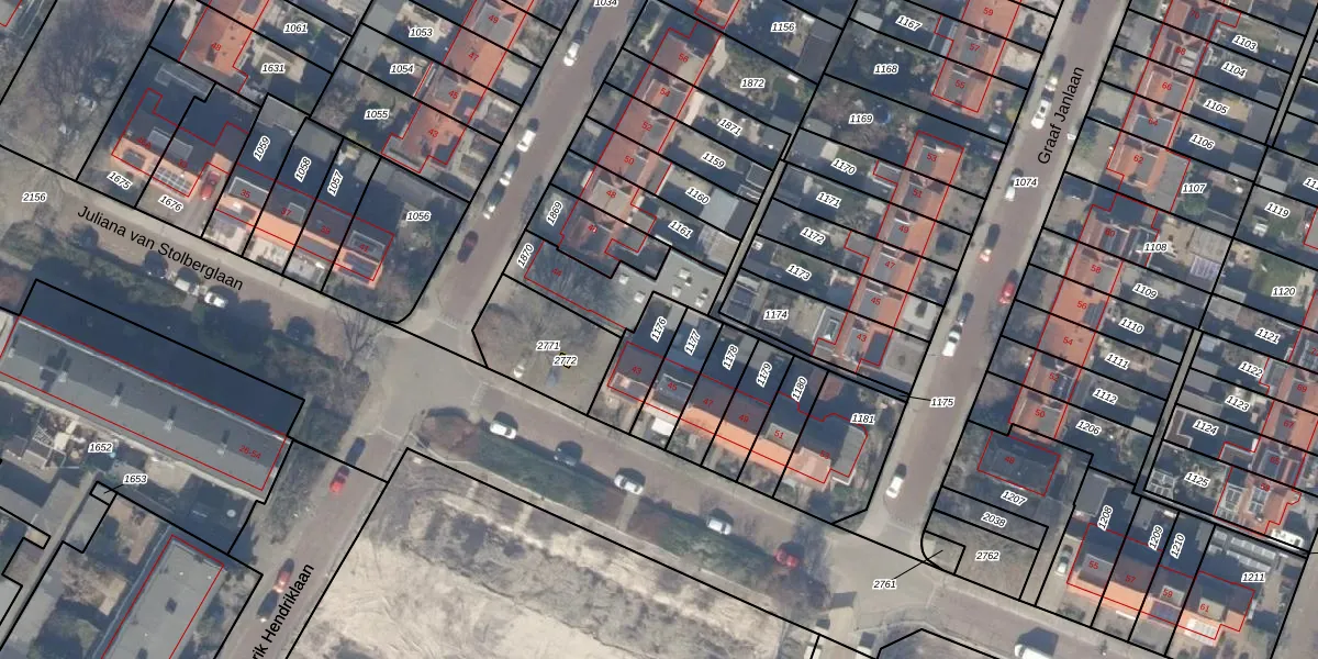 Gebruik de zoekbalk of klik op een perceel om informatie over het perceel te bekijken.