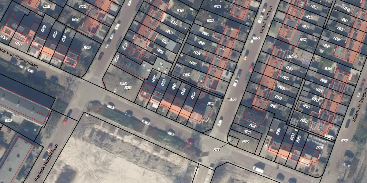 Gebruik de zoekbalk of klik op een perceel om informatie over het perceel te bekijken.