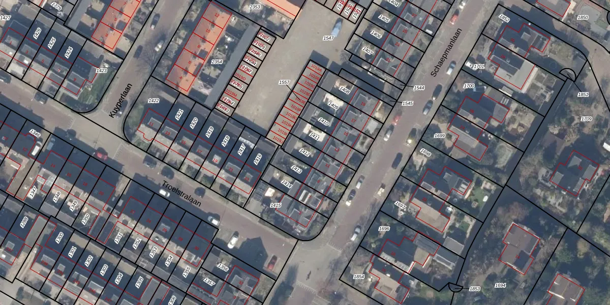 Gebruik de zoekbalk of klik op een perceel om informatie over het perceel te bekijken.