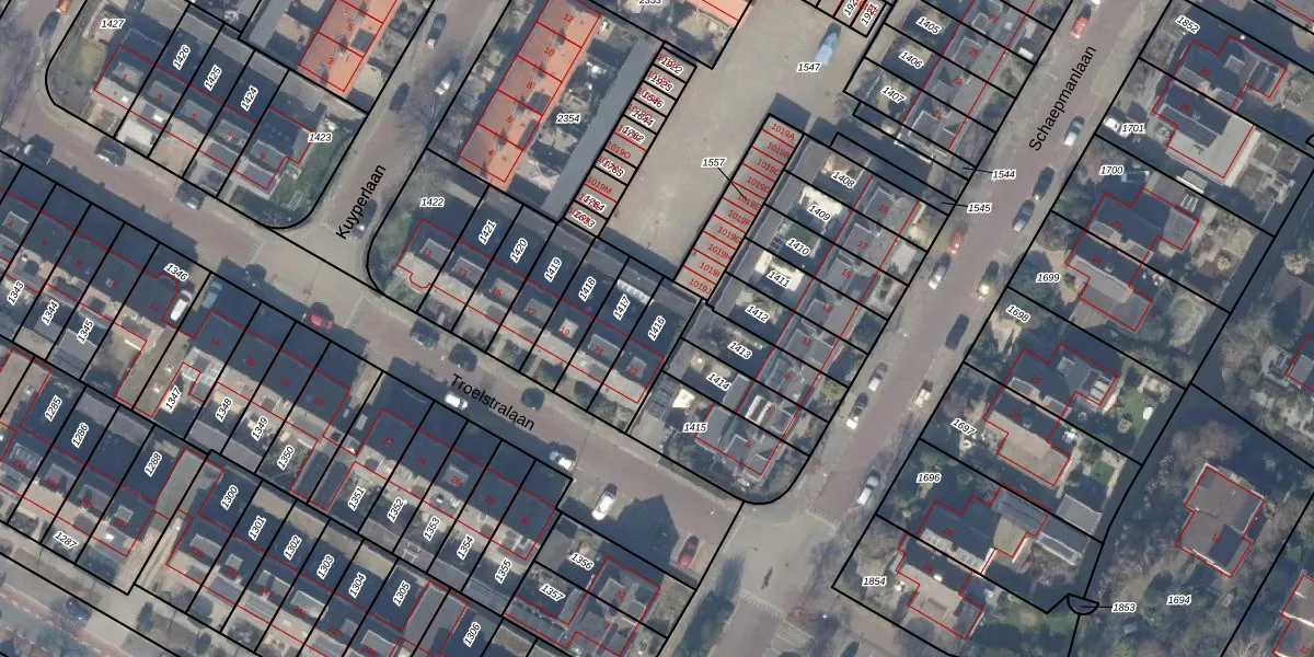 Gebruik de zoekbalk of klik op een perceel om informatie over het perceel te bekijken.