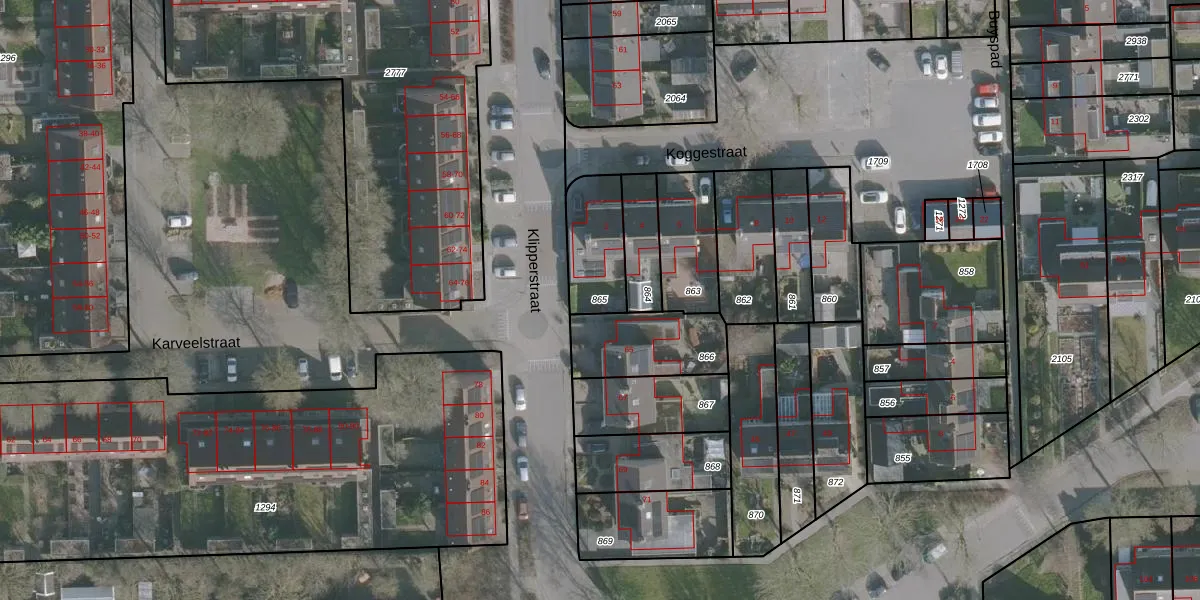 Gebruik de zoekbalk of klik op een perceel om informatie over het perceel te bekijken.