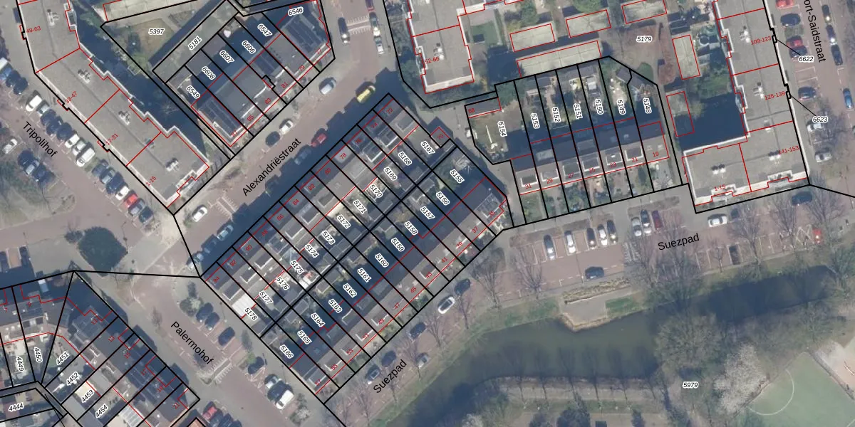 Gebruik de zoekbalk of klik op een perceel om informatie over het perceel te bekijken.