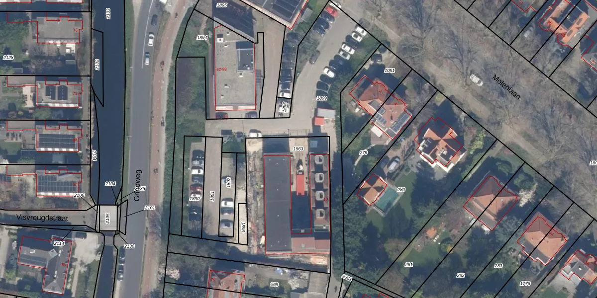 Gebruik de zoekbalk of klik op een perceel om informatie over het perceel te bekijken.