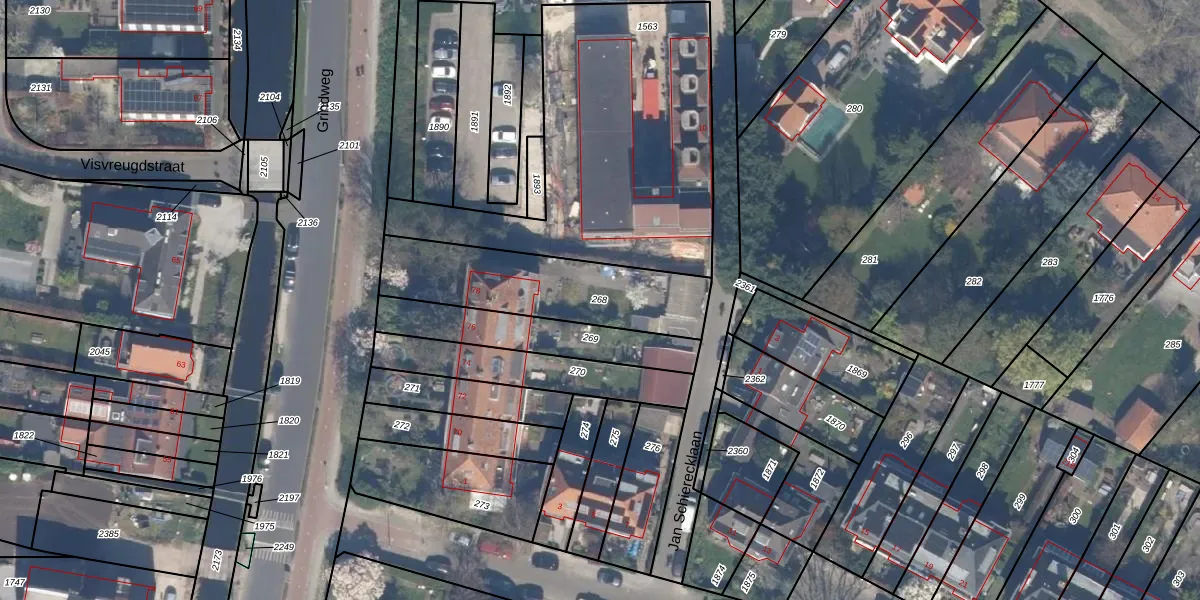 Gebruik de zoekbalk of klik op een perceel om informatie over het perceel te bekijken.