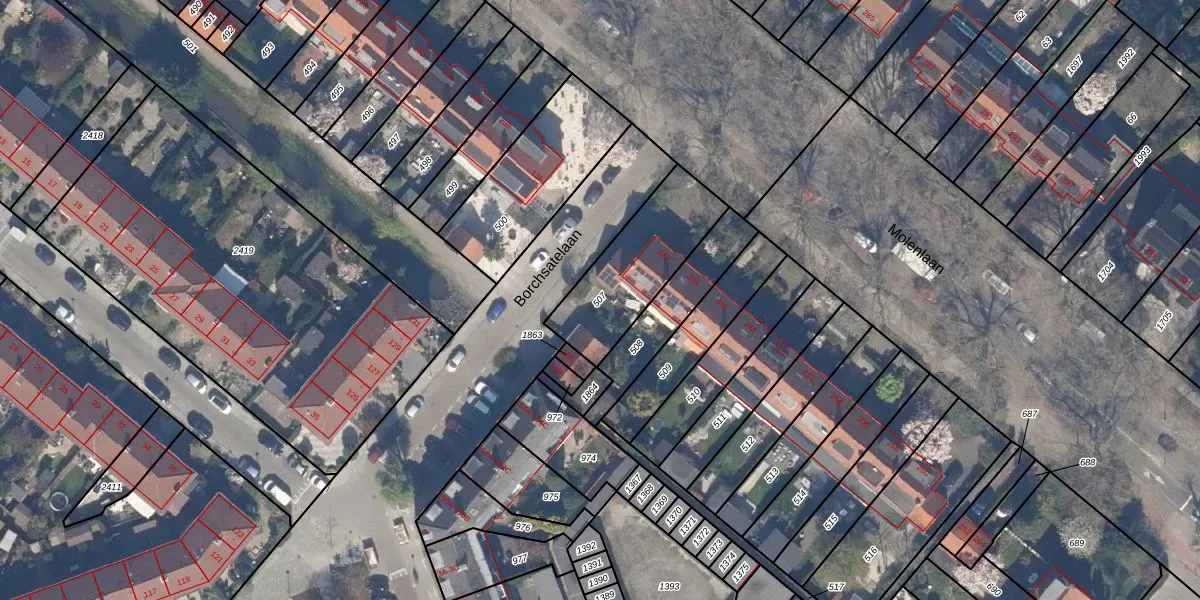 Gebruik de zoekbalk of klik op een perceel om informatie over het perceel te bekijken.