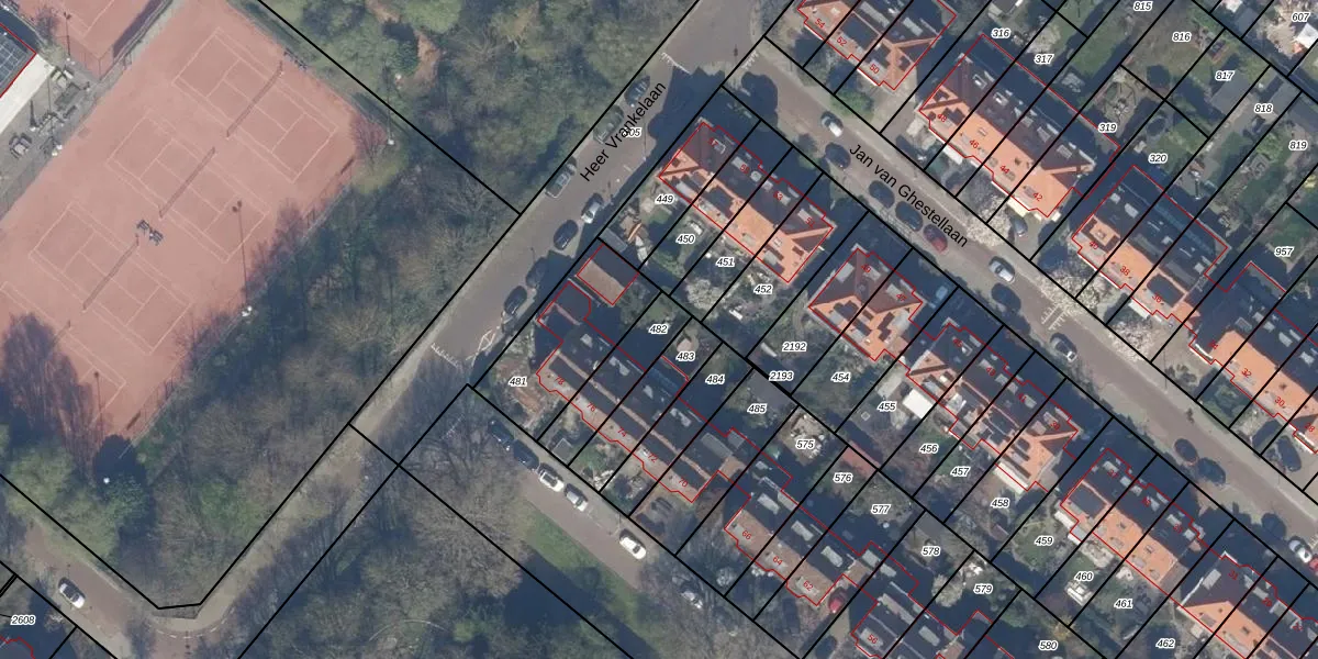 Gebruik de zoekbalk of klik op een perceel om informatie over het perceel te bekijken.