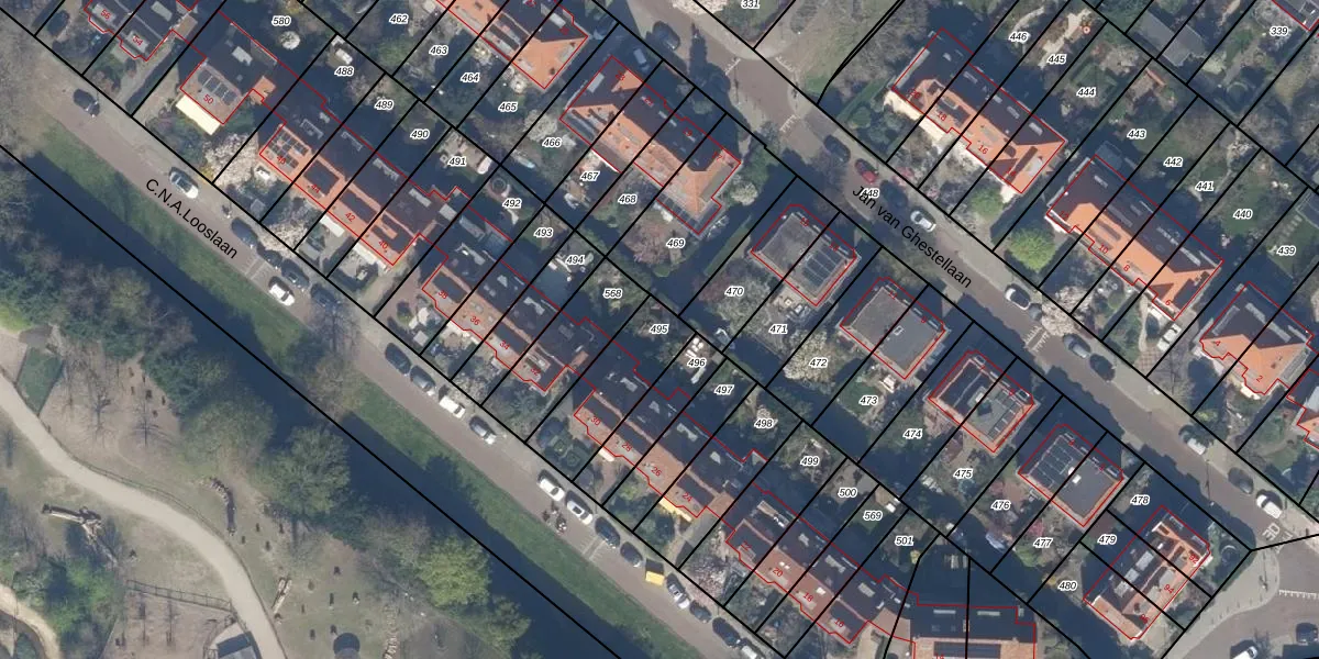 Gebruik de zoekbalk of klik op een perceel om informatie over het perceel te bekijken.