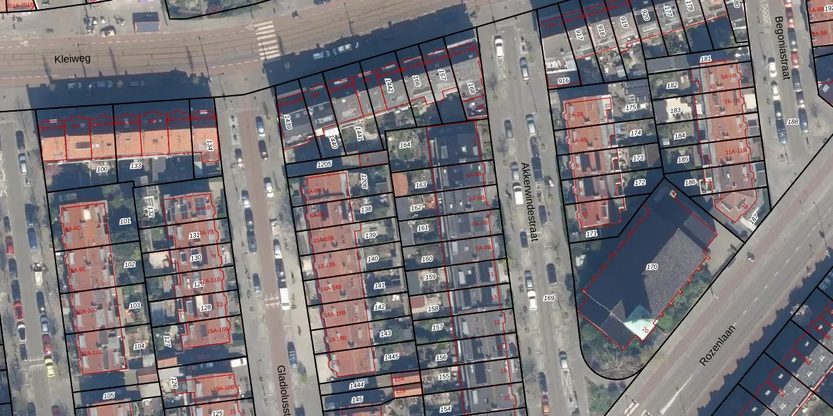 Gebruik de zoekbalk of klik op een perceel om informatie over het perceel te bekijken.