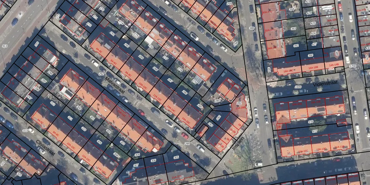 Gebruik de zoekbalk of klik op een perceel om informatie over het perceel te bekijken.