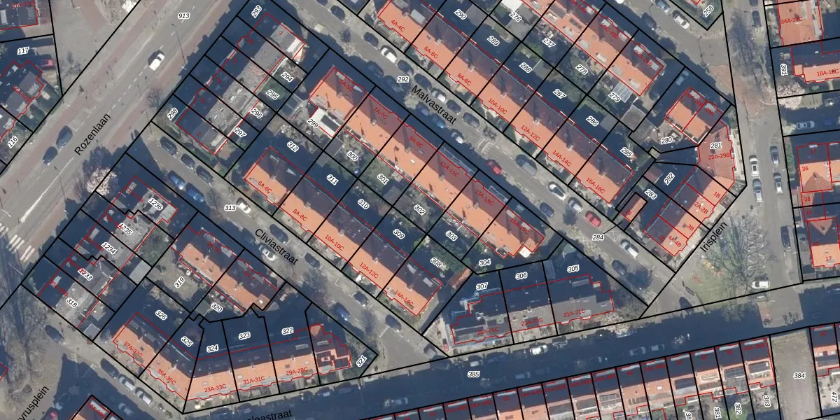 Gebruik de zoekbalk of klik op een perceel om informatie over het perceel te bekijken.