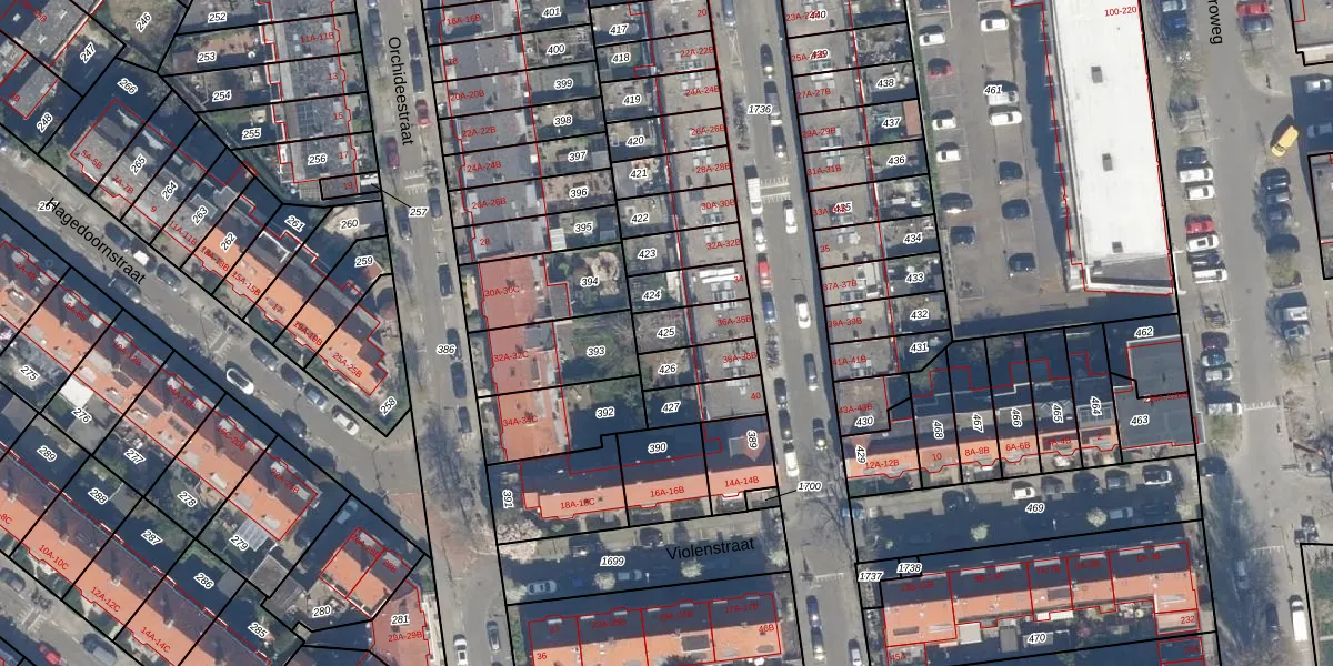 Gebruik de zoekbalk of klik op een perceel om informatie over het perceel te bekijken.