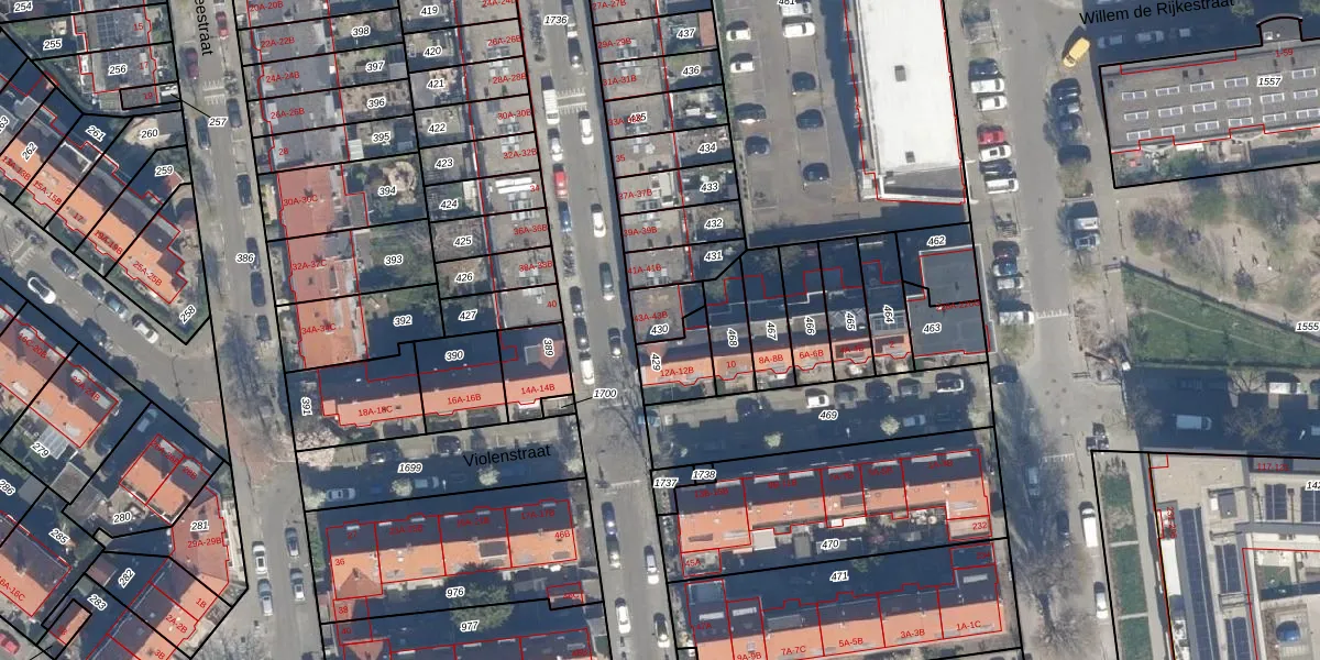 Gebruik de zoekbalk of klik op een perceel om informatie over het perceel te bekijken.