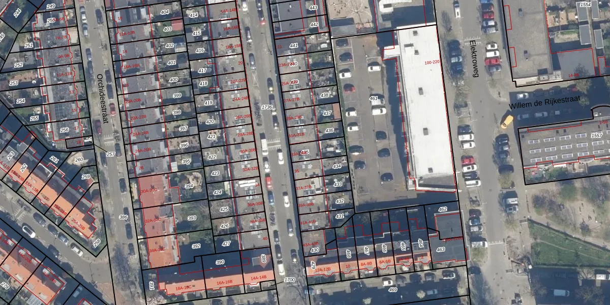 Gebruik de zoekbalk of klik op een perceel om informatie over het perceel te bekijken.