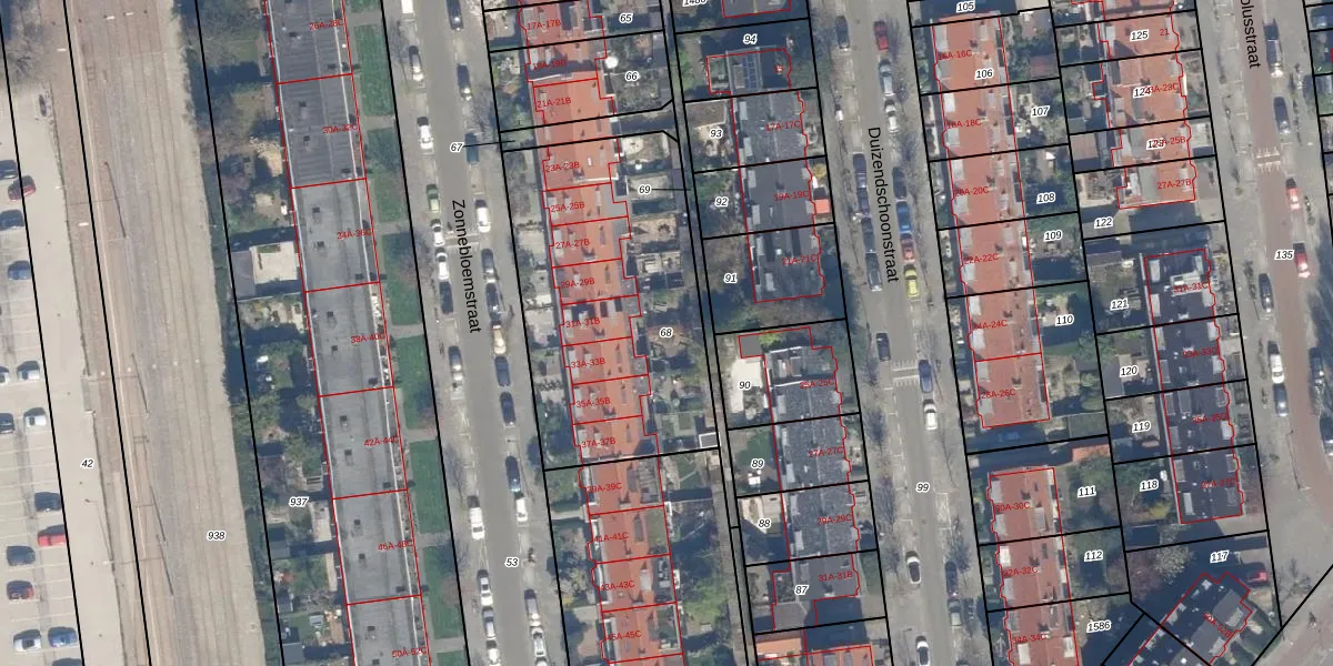 Gebruik de zoekbalk of klik op een perceel om informatie over het perceel te bekijken.