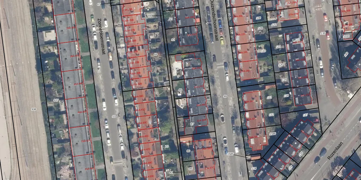Gebruik de zoekbalk of klik op een perceel om informatie over het perceel te bekijken.