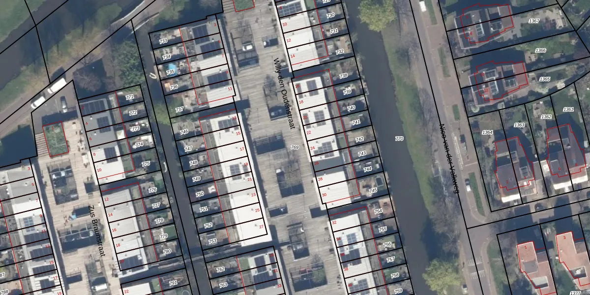 Gebruik de zoekbalk of klik op een perceel om informatie over het perceel te bekijken.